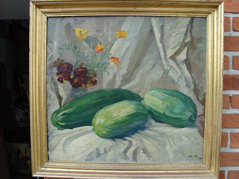 Opstilling med græskar og blomsterbuket 1941.