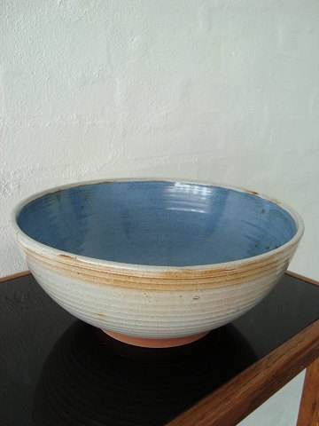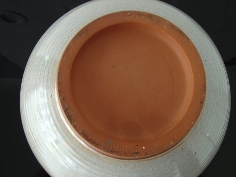Ecru yderglasur og lyseblå inderglasur, i bunden lotusblomst i relief.