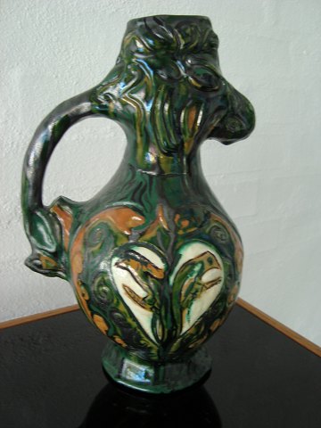Keramik kande i form af ørn med fugledekoration.