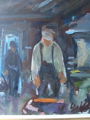 Maleri "Interiør fra en smedje" af Uno Hubert Karlsson.