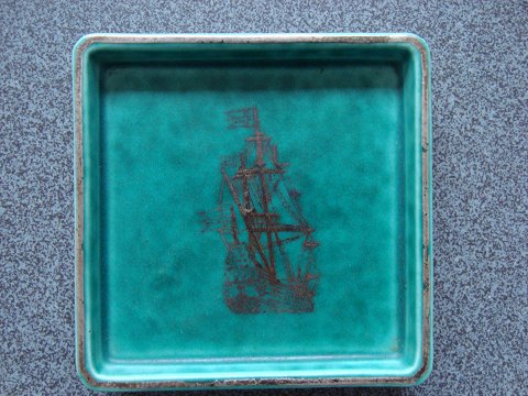Grøn glasur med sølv dekoration "Wasa"