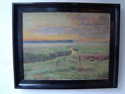 Maleri - E. Weinrich 1912 - Parti fra åløb i eng.