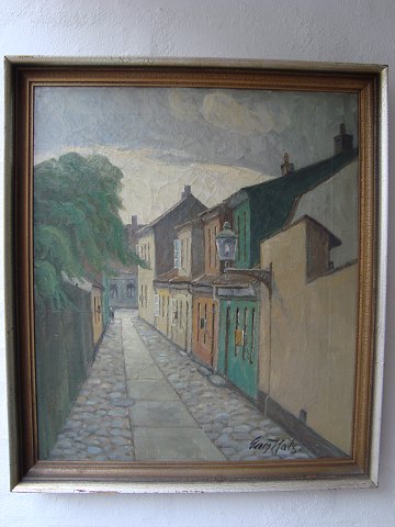 Maleri - Axel Møller - Parti fra Skolegade i Aalborg (nuv. Vingårdsgade) - sign. med pseudonym: Georg Hals