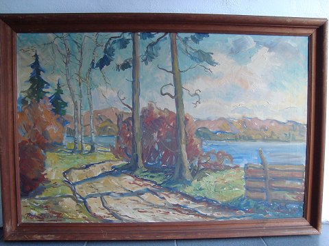 Maleri - Aksel Lundgreen - Efterårsparti fra Rold Skov 1941.