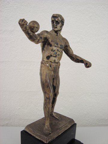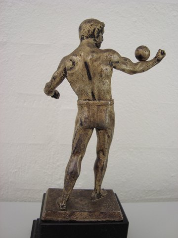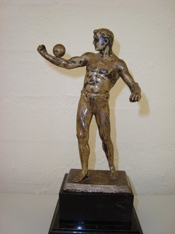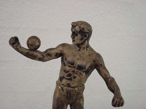 Bronce skulptur med sølvagtig patinering - "Atlet med bold i lændeklæde"
