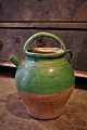 Decorative 1800s clay pots with handles from the South of France with green ...