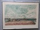 Farvelitografi af Svend Engelund - Nordjysk landskab 1975.