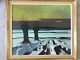Maleri af Peder Brøndum Sørensen - Huse ved havet 1969.