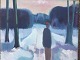 Maleri af Knud Horup - Vinterparti med person på vej.