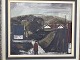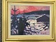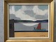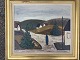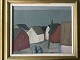 Maleri af Peder Brøndum Sørensen - Huse ved havet 1969.