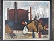 Maleri af Peder Brøndum Sørensen - Huse og Gasværk 1980.