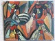Maleri af Eyvind Olesen - Komposition med fjerkræ 1968.