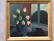 Maleri af Frantz Vester Pedersen - Interiør med kvinde.