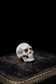 Gammelt mini dødningehoved udskåret i ben.