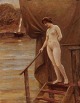 Christian Valdemar Clausen (1862-1911). Nude woman at a wooden pier. Oil ...