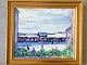 Maleri af Karin Lanng - Huse og skorsten 1980.