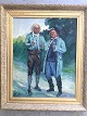 Maleri af Chr. Dybdal - 2 drikkende mænd mødes på vejen - Holberg Motiv.