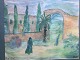 Maleri af Jens Nielsen - Sydlandsk byparti med personer 1948.