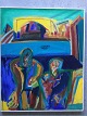Maleri af Jens Nielsen - Religiøst motiv med personer i landskab.