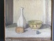 Maleri af Axel P. Jensen - Opstilling på bord med Jais Nielsen krukke og ...