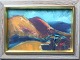 Lille aflangt maleri i varme farver og med sort træramme, i flot stand. ...
