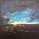 Maleri af Bent Axel Olesen - Huse ved solnedgang 1977.