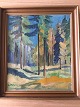 Axel Lind (1907-2011) Vinterlandskab med skov, olie på lærred.