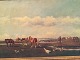 Maleri af Herman Emil Jensen - Hest og personer i landskab.