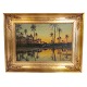 Peder Mønsted; Painting, Motif of a sunset by an oasis in Egypt, Oil on canvas