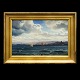 Painting Scenery from Mariager Fjord ca 57 x 76 cm including golden frame ...