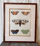 18th century hand-colored print with butterflies in beautiful wooden frame