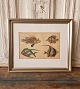 1800s hand-colored print with tropical fish in beautiful simple silver frame.