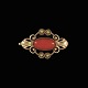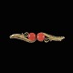 Evald Nielsen. Skønvirke Broche i 14k guld med koral.