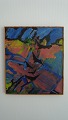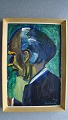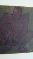 Maleri af Paul Erik Johansen - Komposition med lilla mand siddende på hug.