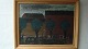 Spændende maleri af ubekendt kunstner - 3 personer i samtale.