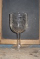 Gammelt Fransk souvenir vin glas med graveret skrift og dekorationer. ...