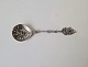 Sugar spoon in silver, richly decorated with ship on the shaft