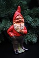 Ældre bemalet terracotta nisse med kurv plads til gran eller løgplante. ...