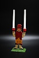 Gammel svensk julenisse lysestage i udskåret træ / bemalet med fin patina ...