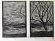 Linoleumssnit af Poul Skov Sørensen - Parti fra Himmerland 1984