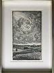 Litografi af Henrik Buster Bruun 1974 - Landskab.