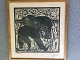 Linoleumssnit af Vibeke Alfelt 1970 - Komposition med heste.