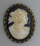 Royal Copenhagen broche / vedhæng i porcelæn med guldbelagt kvinde ansigt. ...