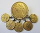 Mønt brosche, 1879. Forgyldte mønter fra England, Sverige og Danmark