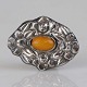 Jugend brosche i sølv med rav, B. Hertz (1893 - 1937) København, Danmark.
