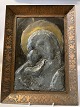 Ikon af jomfru Maria med Jesusbarnet i kobberramme.