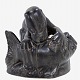 Skulptur af odder og fisk i stentøj. Stemplet.