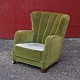 Lænestol - Grønt stof - Træudskæringer - 1920'erne.
