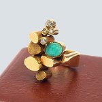 Anette Kræn; Ring of 14k gold with diamonds and amazonite