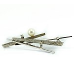 Diamondbrooch in white gold, set with a pearl
